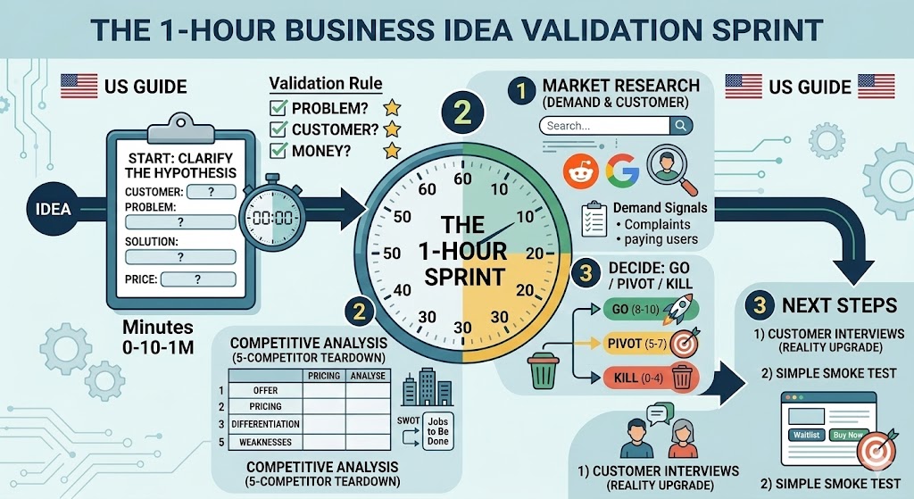 How to Validate a Business Idea (Market Research + Competitive Analysis in 1 Hour) Most business ideas don’t fail because
